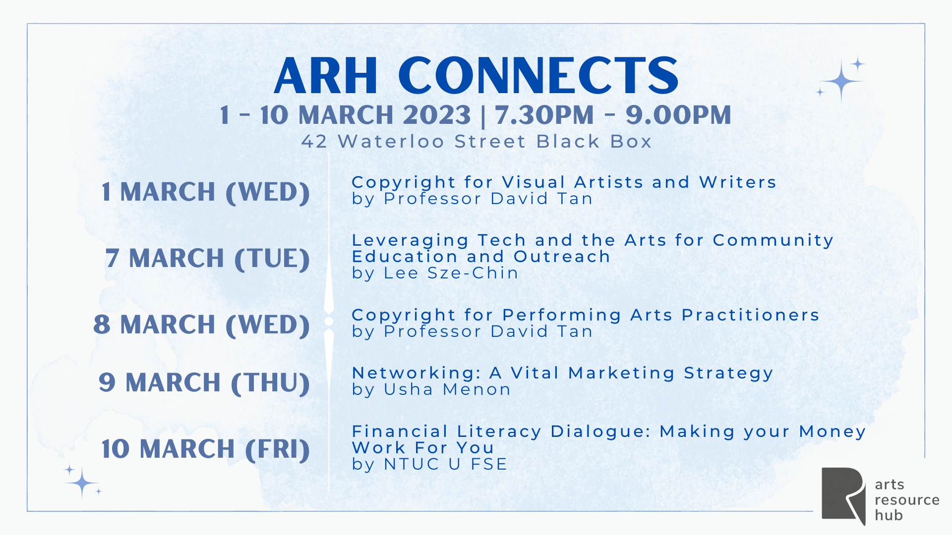 The Arts Resource Hub connects independent arts practitioners with industry knowledge and expert guidance through our events and programmes. Couldn't make it to our ARH Connects sessions? Here are summarised insights and practical takeaways from our recent talks, workshops, and peer learning sessions.